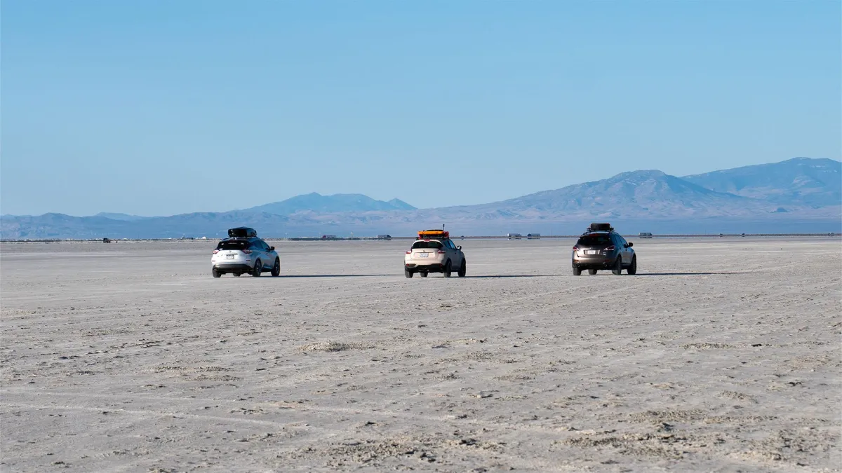 Zero race prep. Full-throttle pulls on salt, $100 trash talk, and an F1-style podium for… reasons. One lifted Murano with skid plate, one Murano on big knobbies, and a Juke running on confidence (and extra gas). Part myth-bust, part road trip, all chaos—and next we trade salt for sand at Little Sahara.