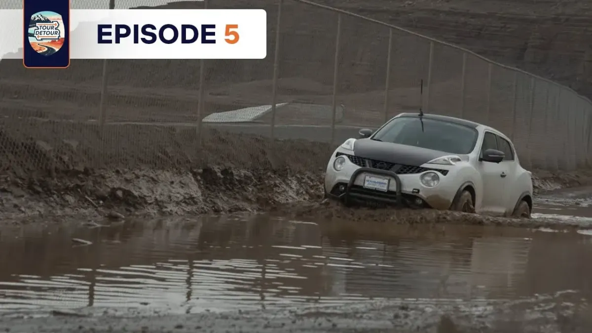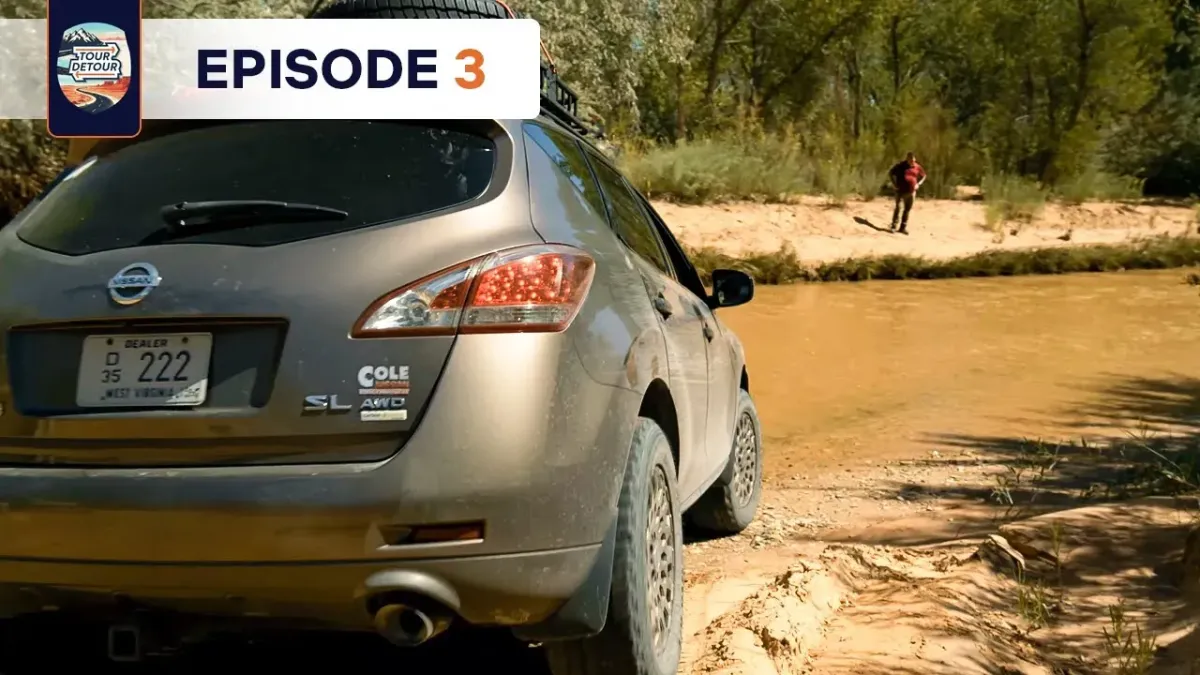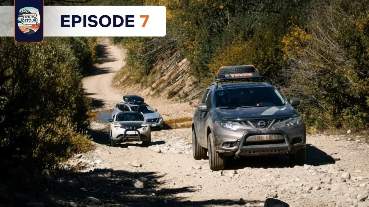 From Moab sunrise to Telluride after dark, the trio pushes their worn Nissans from desert heat into thin alpine air. Zip ties, bad fuel math, and stealth route stickers set the tone early. Then comes the climb past 11,000 feet—pure Detour chaos at altitude.