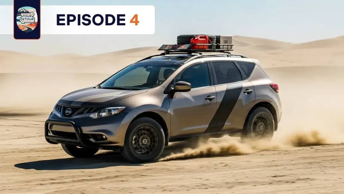Fresh off the Bonneville Salt Flats, we trade white crust for gold dunes: a lifted Murano with a skid plate, another Murano on big knobbies, and a Juke powered by bravado (and spare fuel). No prep. No mercy. Just CVTs clawing through soft sand, radio banter, a surprise “airtime” moment.